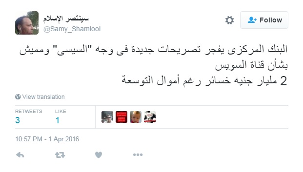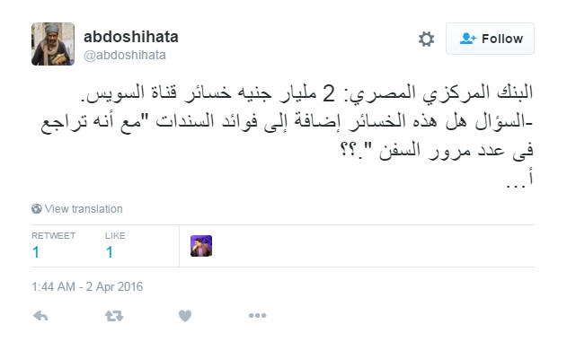 استقبل رواد موقع التواصل الاجتماعي “تويتر” بيان البنك المركزي المصري ، الذي كشف فيه عن تراجع إيرادات قناة السويس للعام المالي الثاني على التوالي بنحو 2 مليار جنيه مصري ، بالاستنكار والسخرية من وعود السيسي.