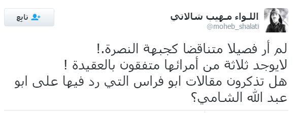 – اللـواء مـهيب شالاتي: لم أر فصيلا متناقضا كجبهة النصرة! لا يوجد ثلاثة من أمرائها متفقون بالعقيدة !هل تذكرون مقالات أبو فراس التي رد فيها على أبو عبد الله الشامي؟