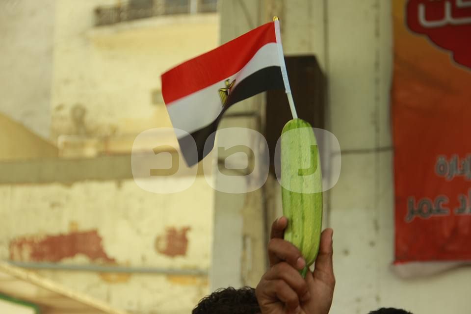حمل المحتجون ثمار “كوسة”، في إشارة إلى الواسطة والمحسوبية، كما رفعوا أعلام مصر.