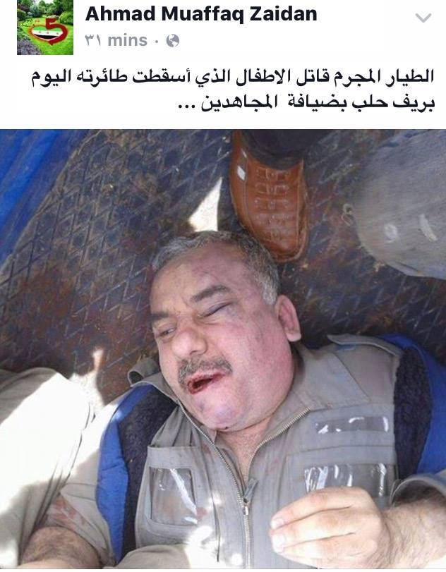 ونشر مستخدمو مواقع التواصل الاجتماعي، صورة قالوا إنها للطيار الذي أسرته قوات المعارضة بحلب اليوم.