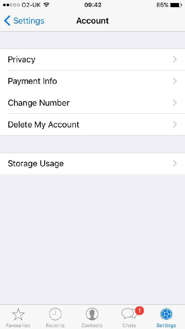 يُمكنك التعرف على أكثر الأشخاص الذين تُحادثهم على واتس آب، من خلال التوجّه إلى إعدادات التطبيق Settings، ثم Account، لتجد شاشة يظهر بها خيار Storage Usage، كما هو موضّح بالصورة في الأسفل: