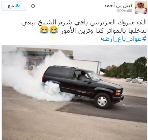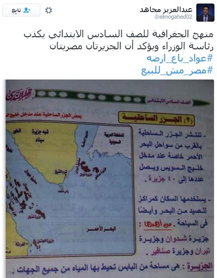 دشن رواد موقعي التواصل الاجتماعي “فيس بوك” و”تويتر” هاشتاجا تحت اسم”عواد باع أرضه”، ردا على بيان مجلس الوزراء المصري، الذي أكد أنّ رسم خط الحدود بناءً على المرسوم الملكي والقرار الجمهوري أسفر عن وقوع جزيرتي صنافير وتيران داخل المياه الإقليمية للمملكة العربية السعودية.