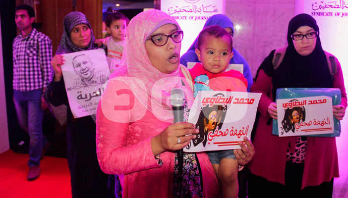 نظم عدد من أهالي الصحفيين المعتقلين وقفة رمزية حملوا خلالها صور ذويهم المعتقلين داخل نقابة الصحفيين، أثناء احتفال نقابة الصحفيين بعيدها الماسي، وسط حضور عدد كبير من الصحفيين والشخصيات العامة.