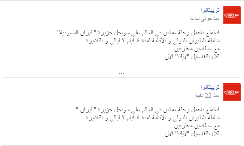 أعلنت شركة “تريبتانزا” للسياحة المصرية، عن رحلة غطس إلى جزيرة “تيران السعودية”- بحسب وصف الشركة، إلا أنها سرعان ما عدلت إعلانها ليصبح “جزيرة تيران”؛ وذلك بعد ظهور استياء عدد من متابعي الصفحة على “فيس بوك”.