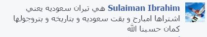 Sulaiman Ibrahim-: “هي تيران سعودية؟ يعني اشتراها امبارح وبقت سعودية وبتاريخه وبتروجولها كمان حسبنا الله”.