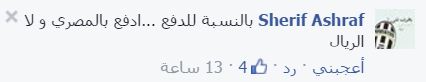 Sherif Ashraf-: “بالنسبة للدفع.. ادفع بالمصري وﻻ الريال”.