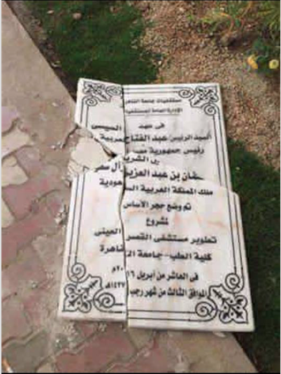 وبعد يومين من وضع حجر الأساس لتطوير المستشفى، تداول رواد مواقع التواصل الاجتماعي، صورة تظهر تكسير قطعة من الرخام، أو ما يطلق عليها “حجر الأساس” والتي ظهرت بالعديد من الصور أثناء الافتتاح، الأحد الماضي.