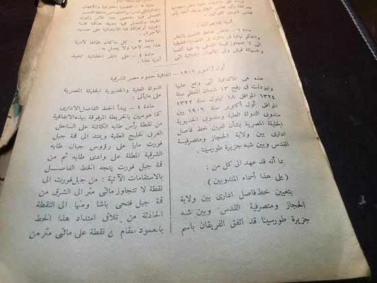 وأشار د.فرحات إلى أنه لم يرد بها ذكر لدخول الجزيرتين في ولاية الحجاز، بل تدخلان في ولاية مصر وفقا للخطوط المرسومة مع حفظ حقوق العربان، “أنطون صفير، محيط الشرائع، ص ١٦١٧”.