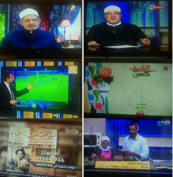 3 – التلفزيون المصري بعيد عن التظاهرات، وتنقل قنواته برامج للطبخ والرياضة وغيرها، كما الحال في ثورة يناير عندما نقل التلفزيون يوم 25 صورة كوبري قصر النيل خاليا تماما من أي متظاهرين.