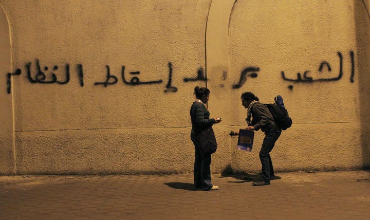 7- اعتاد الثوار استخدام الجرافيتي تعبيرا عن سخطهم على النظام وتوصيل رسالة للحكام، فاستخدمه الثوار اليوم كما استخدمها في يناير.