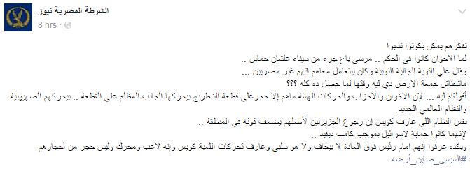 (5) نشر اتهامات وشائعات منافية للحقيقة، على سبيل المثال: “بيع محمد مرسي جزءا من سيناء لحركة حماس”.