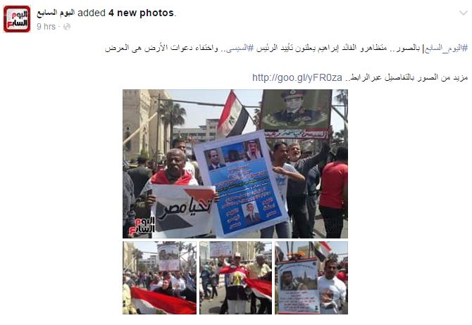 (3) نشر صور الموالين للسيسي يتظاهرون أمام القائد إبراهيم، ووصف الأعداد أنها بالمئات وهي لم تتعدَّ العشرات إن لم يكن أقل.