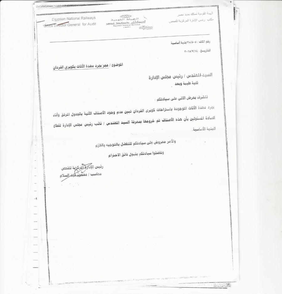 كشف تقرير صادر من الإدارة المركزية للفحص استيلاء المهندس فرج محمود أحمد فرج نائب رئيس مجلس إدارة الهيئة القومية لسكك حديد مصر لقطاع الموارد البشرية على 6 استراحات مملوكة للهيئة، وتقدر بمليوني جنيه.