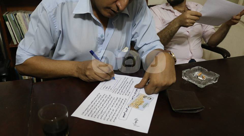 وقع عدد من المواطنين وأعضاء حزب الكرامة على استمارات حملة جمع توقيعات بعنوان “أرضي”؛ اعتراضا على تنازل عبدالفتاح السيسي عن جزيرتي تيران وصنافير للمملكة العربية السعودية.