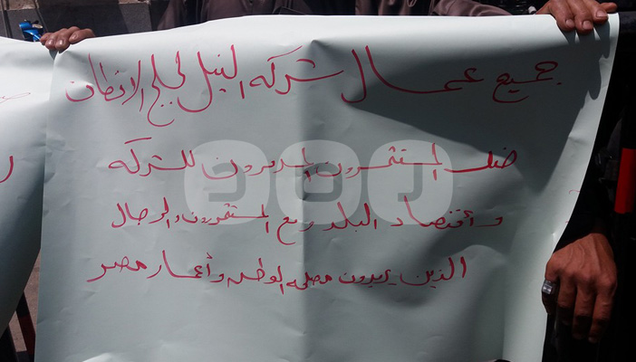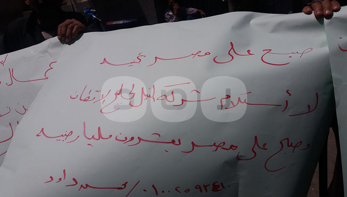 رفع العمال عدة لافتات تعبر عن استيائه من عدم تنفيذ الحكم الصادر بعودتهم للدولة.