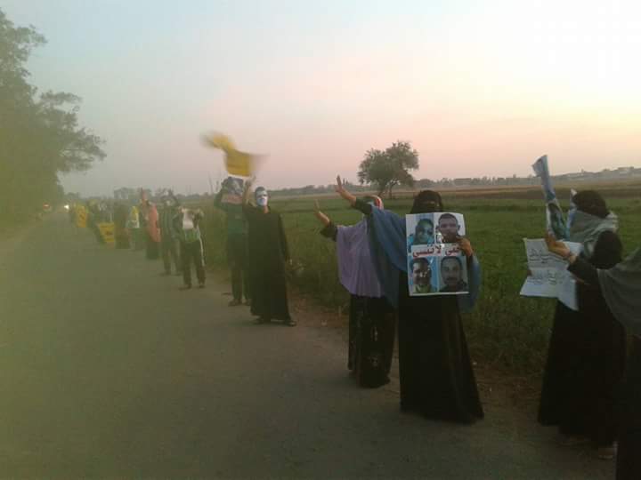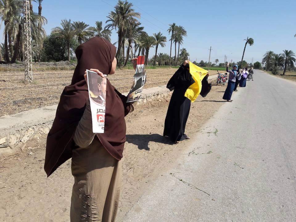 خرجت نساء قرية قصر الجبالي التابعة لمركز يوسف الصديق بمحافظة الفيوم صباح اليوم في سلسلة بشرية بالتزامن مع ذكرى تحرير سيناء للمطالبة برحيل العسكر وعودة الشرعية، وذلك ضمن فعاليات أسبوع “ارحل” الذي دعا إليه التحالف الوطني لدعم الشرعية.