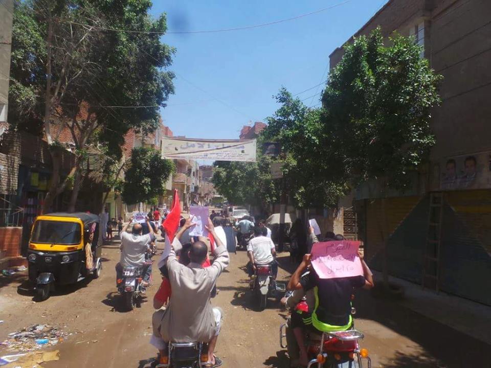 نظمت حركة أحرار “قرى حوش عيسى” سلسلة بشرية بدأت في وقت مبكر من صباح اليوم على طريق مصنع الغاز، رفع المشاركون فيها لافتات تحمل عبارات: “دولة حاتم، عواد باع أرضك، مرسي صان والسيسي خان”، كما خرج شباب حوش عيسى في مسيرة جديدة أمام مسجد خاتم المرسلين لتطوف أحياء “المنشية، السنوسي، السويقة”.
