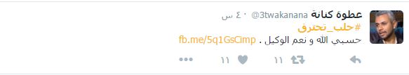 – رئيس تحرير صحيفة النادي الرياضية السعودية، محمد البكيري: “حلب تحترق وتحرق معها كل الوعود السياسية الكاذبة، لطفك ورحمتك بهم يالله”.