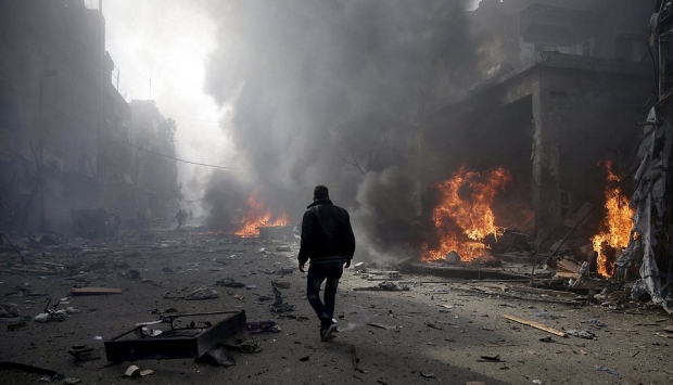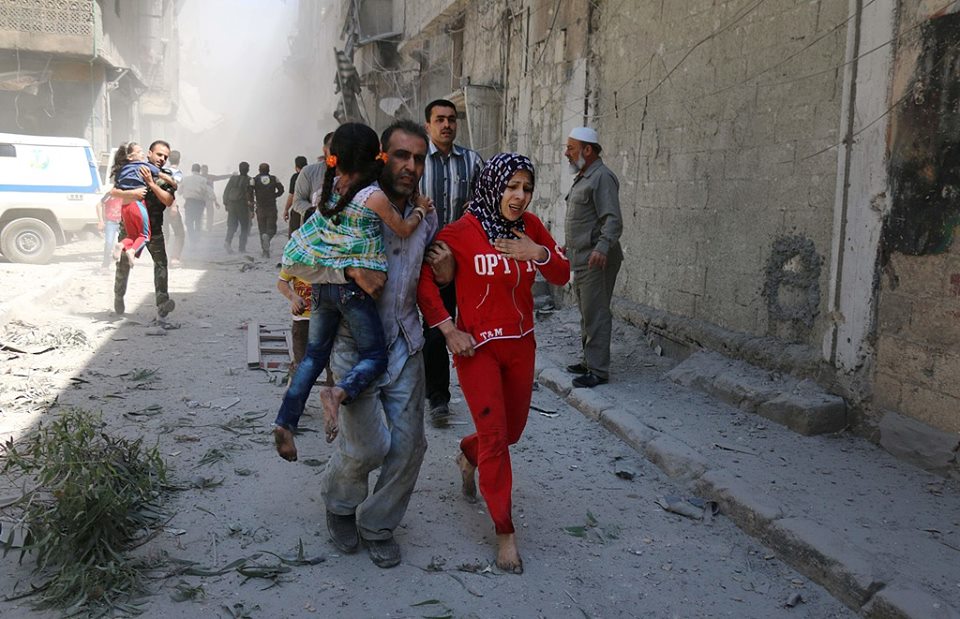 تعرضت حلب مساء أول أمس الاربعاء 27 أبريل، لعملية قصف من طائرات النظام وروسيا بقنابل عنقودية، في أكبر تصعيد منذ الهدنة الهشة بين المعارضة السورية وميليشيات نظام بشار، وأسفر القصف عن عشرات القتلى والجرحى، ودمرت ضربة جوية مباشرة مستشفى القدس، وقتل خلالها 14 على الأقل من الفريق الطبي والمرضى.