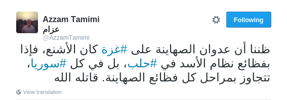 وقال -عبر تغريدة له على “تويتر”-: “ظننا أن عدوان الصهاينة على غزة كان الأشنع، فإذا بفظائع نظام الأسد في حلب، بل في كل سوريا، تتجاوز بمراحل كل فظائع الصهاينة”.