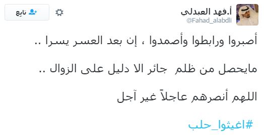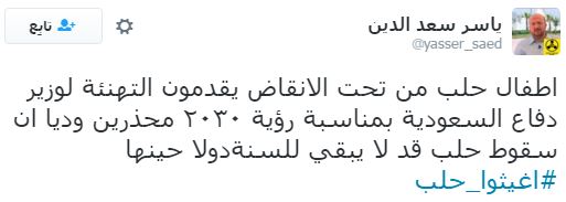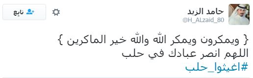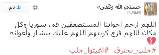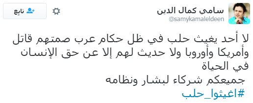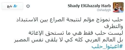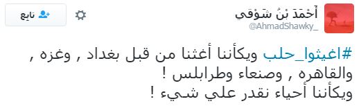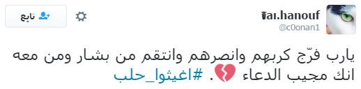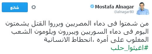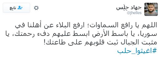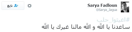 وعلى إثر ذلك دشن رواد مواقع التواصل الاجتماعي، هاشتاجا تحت اسم “#أغيثوا_حلب”، تعليقًا على ما يحدث من مجازر وقتل للمدنيين والأطفال والنساء والشيوخ، وجاءت التعليقات كالآتي:
