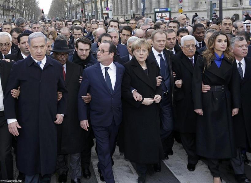 في 11 يناير 2015، شهدت العاصمة الفرنسية باريس، مليونية بمشاركة قادة وممثلي 50 دولة حول العالم تنديدا بالهجمات، وشارك في المسيرة الرئيس الفرنسي فرانسوا أولاند ونحو 20 من القادة الأوروبيين من بينهم رئيس الوزراء البريطاني ديفيد كاميرون والمستشارة الألمانية أنجيلا ميرك، ونشرت صحيفة “لوموند” الفرنسية قائمة بالشخصيات السياسية والدينية، إضافة إلى زعماء العالم الذين تم الإعلان عن مشاركتهم حتى الآن بالمسيرة.