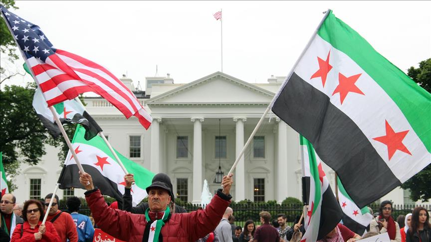 وتظاهر العشرات أمام البيت الأبيض في العاصمة الأميركية واشنطن، احتجاجًا على قصف النظام السوري وروسيا، مناطق سكنية في مدينة حلب.