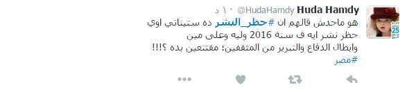 وقالت هدى: “هو ماحدش قالهم ان #حظر_النشر ده ستيناتي اوي حظر نشر ايه ف سنة 2016 وليه وعلى مين وابطال الدفاع والتبرير من المثقفين؛ مقتنعين بده ؟!!!”.