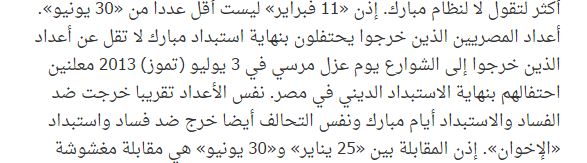 وجاء رأي “فندي” مغايرًا لما كان إبان أحداث 30 يونيو، والتي وصفها بأنها ثورة شعب خرجت لتعزل حكم الاستبداد الديني، وكثيرًا ما أثنى عليها في مقالاته، كما أكد ضرورة عزل الدكتور محمد مرسي خشية انقسام المجتمع.