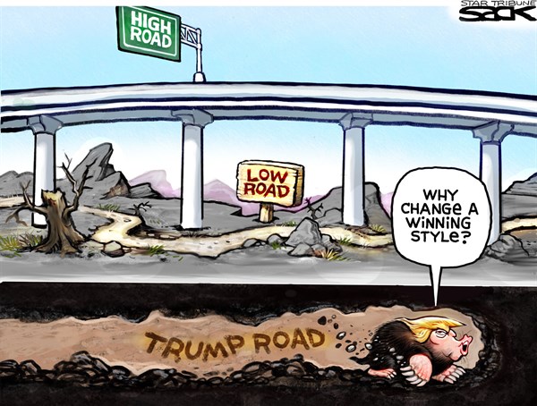 ونشر موقع “بروليتكال كارتونز” رسما يسخر من تصريحات ترامب في الانتخابات التمهيدية للرئاسة الأميركية