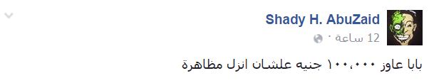 وسخر شادي أبوزيد، مراسل أبلة فاهيتا قائلا: “بابا.. عاوز 100.000 جنيه علشان أنزل مظاهرة”.
