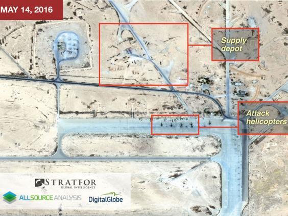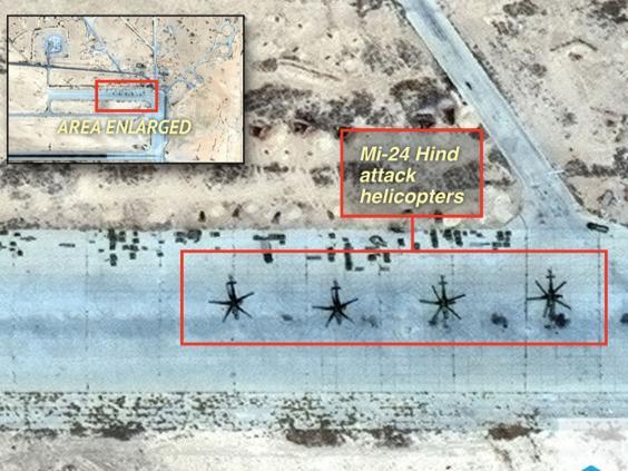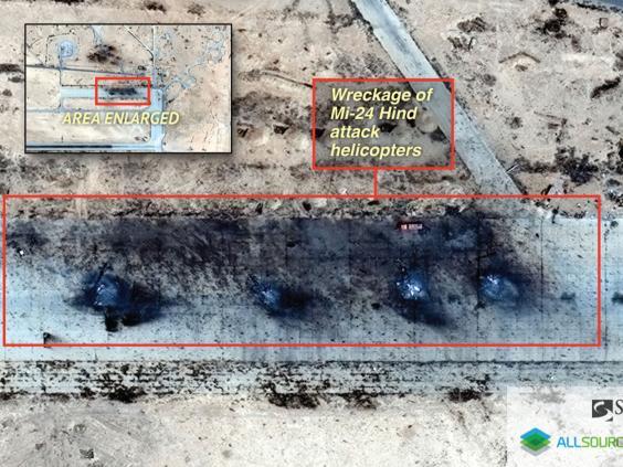 أظهرت صور التقطت عبر الأقمار الصناعية حطام طائرات مروحيات روسية، فيما يبدو أنها تعرضت لهجوم صاروخي منسق، ورغم نفي روسيا للهجوم إلا أن مصادر استخباراتية أميركية وأخرى مرتبطة بـ”تنظيم الدولة” أكدت وقوع الهجوم.