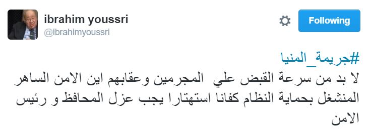 تعليقًا على حادث المنيا.. إبراهيم يسري: يجب عزل المحافظ ورئيس الأمن