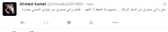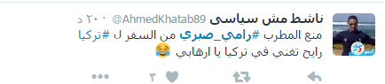 أثار قرار سلطات مطار القاهرة الدولي، اليوم الجمعة، منع المطرب رامي صبري، من السفر إلى تركيا لعدم حصوله على موافقة أمنية الجدل، رغم أن صبري لم يكن له أي نشاط سياسي، بل كان أحد الداعمين لنظام السيسي، وشارك في الإنتخابات الرئاسية الأخيرة، وأعلن ترشيحه للسيسي.