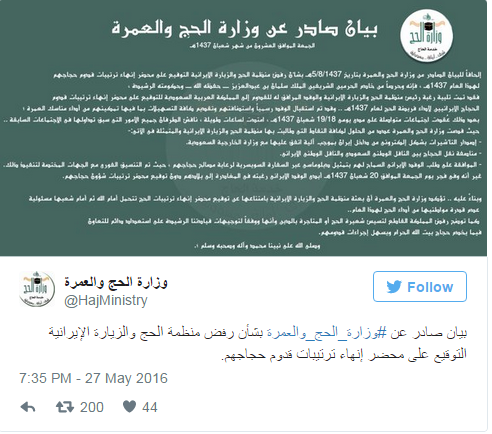 كانت السعودية، قد نفت منع الحجاج الإيرانيين من المشاركة في موسم الحج للسنة الحالية بعد إعلان طهران أن الرياض تعرقل ذلك.