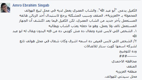 وأكد عمرو إبراهيم، أحد المصريين بالكويت، أن الكفيل الكويتي يدعى “أبو عبدالله”، والشاب المصري يعمل لديه في محل لبيع الهواتف المحمولة بمنطقة العزيزية، في المنقف.