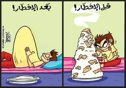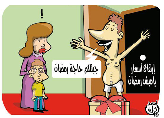 وتداول رواد صفحات الفيس بوك والنشطاء ومغردو تويتر عشرات الرسوم الكاريكاتورية التي تسخر من ارتفاع الأسعار، ومن بعض السلوكيات الخاطئة التي تمارس خلال الشهر الفضيل.