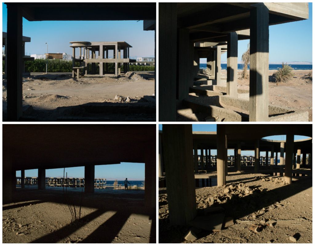 يقول “علي خليل”، أحد ملاك الفنادق: “فندقي فريد من نوعه، وسيحتوي على حمام سباحة ونادي صحي كبير، ويومًا ما سيكون جميل جدًا”، لكن هذا اليوم لم يحن بعد فأعمال البناء في المنتجع الواقع على الساحل الجنوبي في شبه جزيرة سيناء متوقفة منذ سنوات، والفيلات عبارة عن خرسانة عارية محمصة في الشمس مثل الفخار غير المطلي، ولا يوجد أي عملاء، يوجد فقط الكثير من الكلاب.