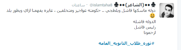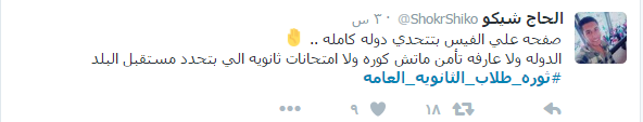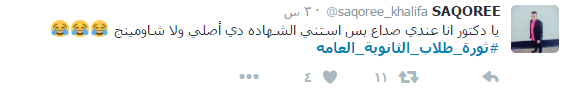 دشن مغردو موقع التدوين المصغر “تويتر” هاشتاج “ثورة طلاب الثانوية العامة”، وانضم لقائمة الأكثر تداولاً على موقع التدوينات، وجاءت التغريدات ضد قرار إلغاء التنسيق وفشل وزارة التربية والتعليم في منع التسريبات.