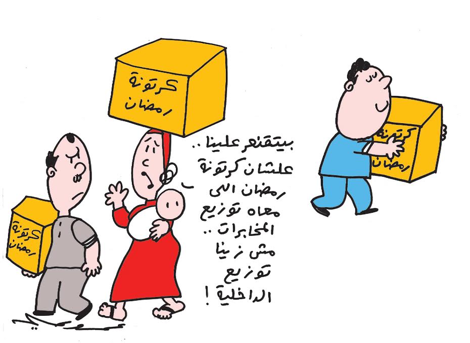 وعن استغلال السلطة أزمة الأسعار وضيق حال المواطنين بتوزيع إعانات دون حل الأزمة جاء كاريكاتير المصري اليوم