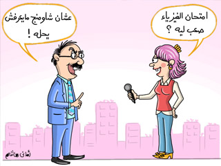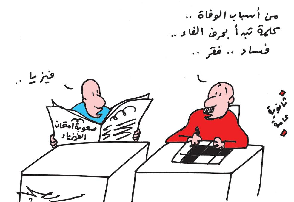 -علقت “روزاليوسف” على صعوبة امتحان الفيزياء برسومات ساخرة .