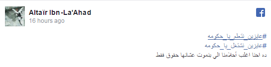 وعلى موقع التواصل الاجتماعي “فيسبوك” أطلق نشطاء حملة عايزين نشتغل يا حكومة مطالبين بتوفير فرص عمل منوهين إلى تزايد معدّل البطالة لافتين إلى أنها ابسط حقوق المواطن .