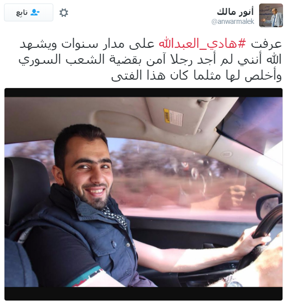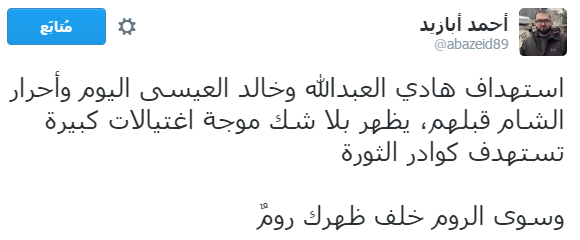 وعلّق الناشط السوري أحمد أبازيد، على محاولة اغتيال هادي العبدالله: