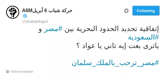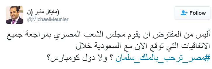 وأثارت الاتفاقية بين مصر والسعودية، التي تنازل بموجبها السيسي عن الجزيرتين لصالح المملكة العربية السعودية، ردود أفعال غاضبة وقوية من النشطاء والسياسيين، ودشنوا هاشتاج “#مصر_ترحب_بالملك_سلمان”.