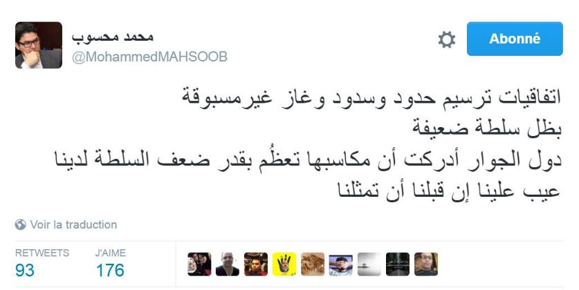 يوم السبت 9 أبريل 2016، فاجأ النظام المصريين بتنازل الدولة عن جزيرتي “تيران وصنافير” وأعلن أنهما تقعان داخل المياه الإقليمية السعودية للبحر الأحمر.