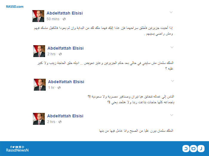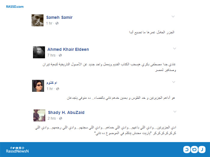 كما سخر المنشورات والتغريدات والصور من تبدل الموقف العام المصري من تأييد إعطائها للسعودية إلى رجوعها أخيرًا لمصر بقرار قضائي.