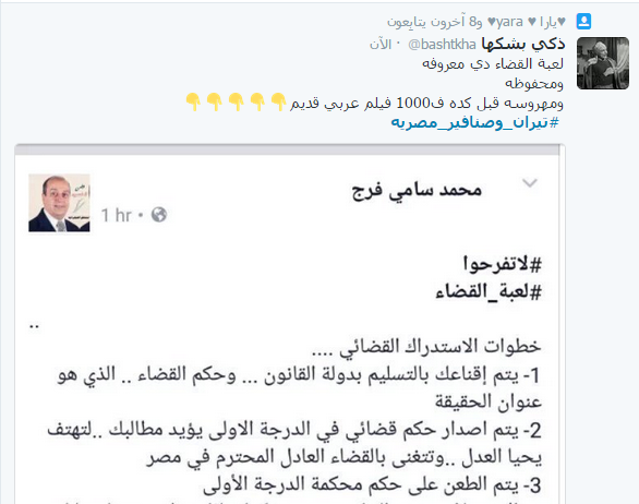 وتداول مغردو “تويتر” فى الهاشتاج تعليقات تعبر عن تفاجأهم بالحكم الذي أحدث دويًا قويًا على مواقع التواصل الاجتماعى كلها، وأصبح حديث كل الرواد.