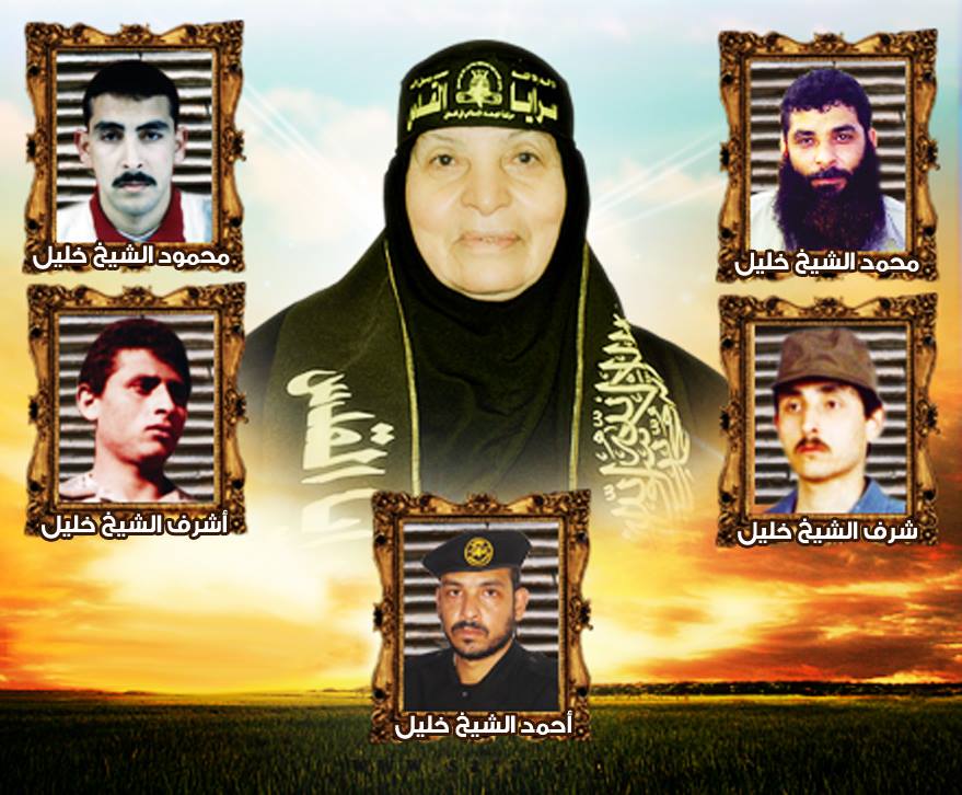 وذكرت مواقع فلسطينية، أن الشهداء الخمسة هم شرف وأشرف ومحمود ومحمد وأحمد، القادة في سرايا القدس الجناح العسكري لحركة الجهاد الإسلامي في فلسطين، وأشارت إلى أن الراحلة قدمت أيضا ثلاثة من أحفادها واثنين من أزواج بناتها شهداء في عمليات منفصلة.