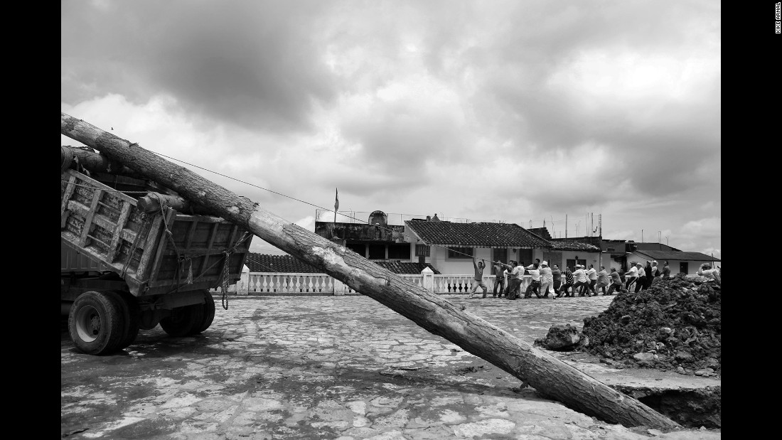 قام الشبان بحفر حفرة لوضع الشجرة بها لتستقيم واقفة، ثم جردوها من الأوراق، وتزينوا بالريش ليبدو كالطيور، ظنًا منهم أن ذلك يلفت انتباه إلههم، ثم صعدوا عليها وربطوا أنفسهم بها وبدءوا يتلون شعائرهم على أصوات الناي.