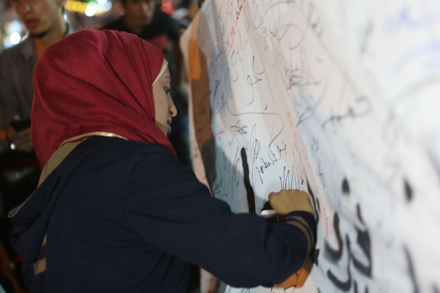 وتستمر الحملة لمدة أربعة أيَام لتجميع اللافتات بجدارية واحدة كأكبر جدارية رافضة للتطبيع في الأردن.